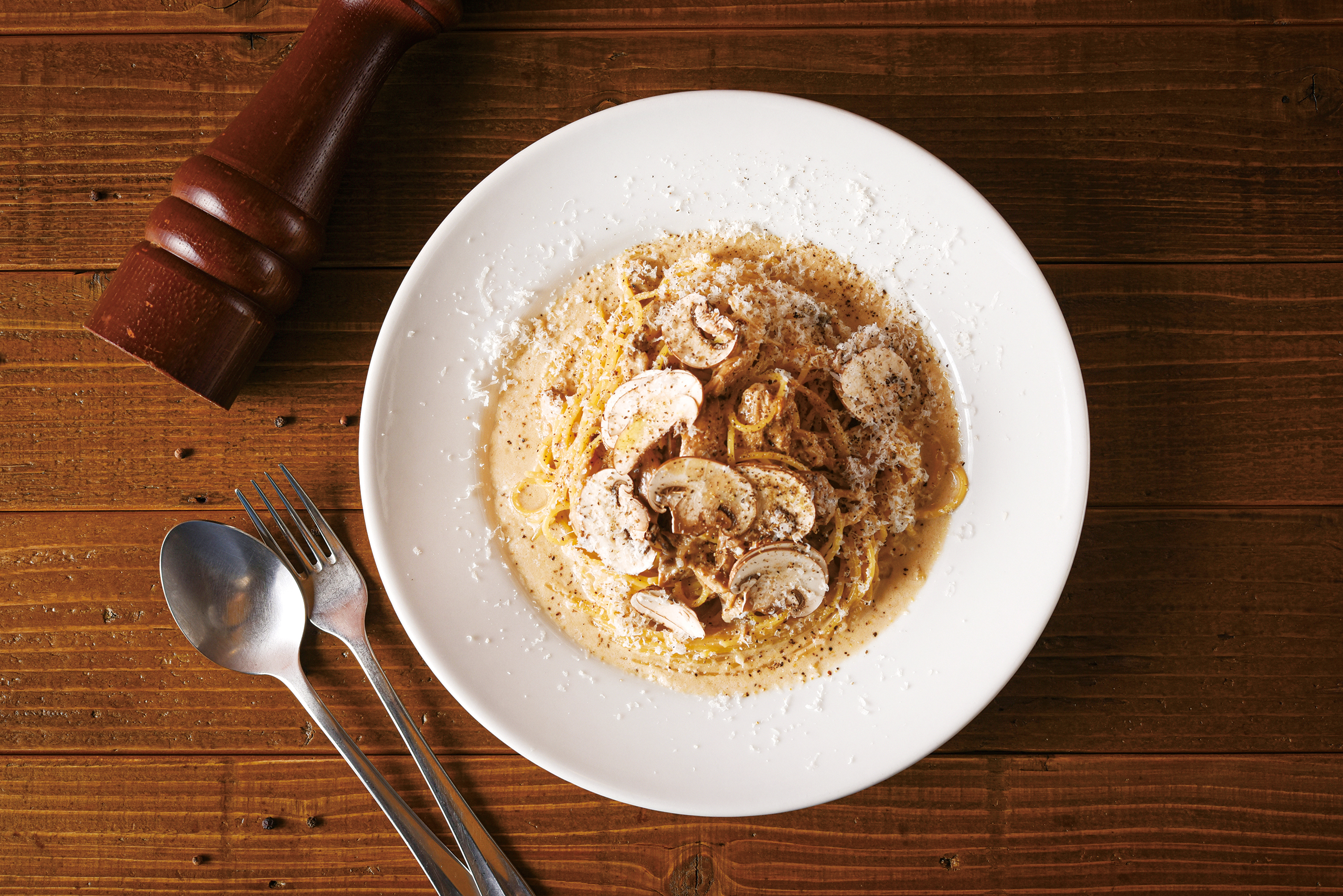 仕上げの24ヶ月熟成パルミジャーノ・レッジャーノとトリュフオイルのアクセントがさらに奥深さを深める秋冬にぴったりのパスタとなっております。