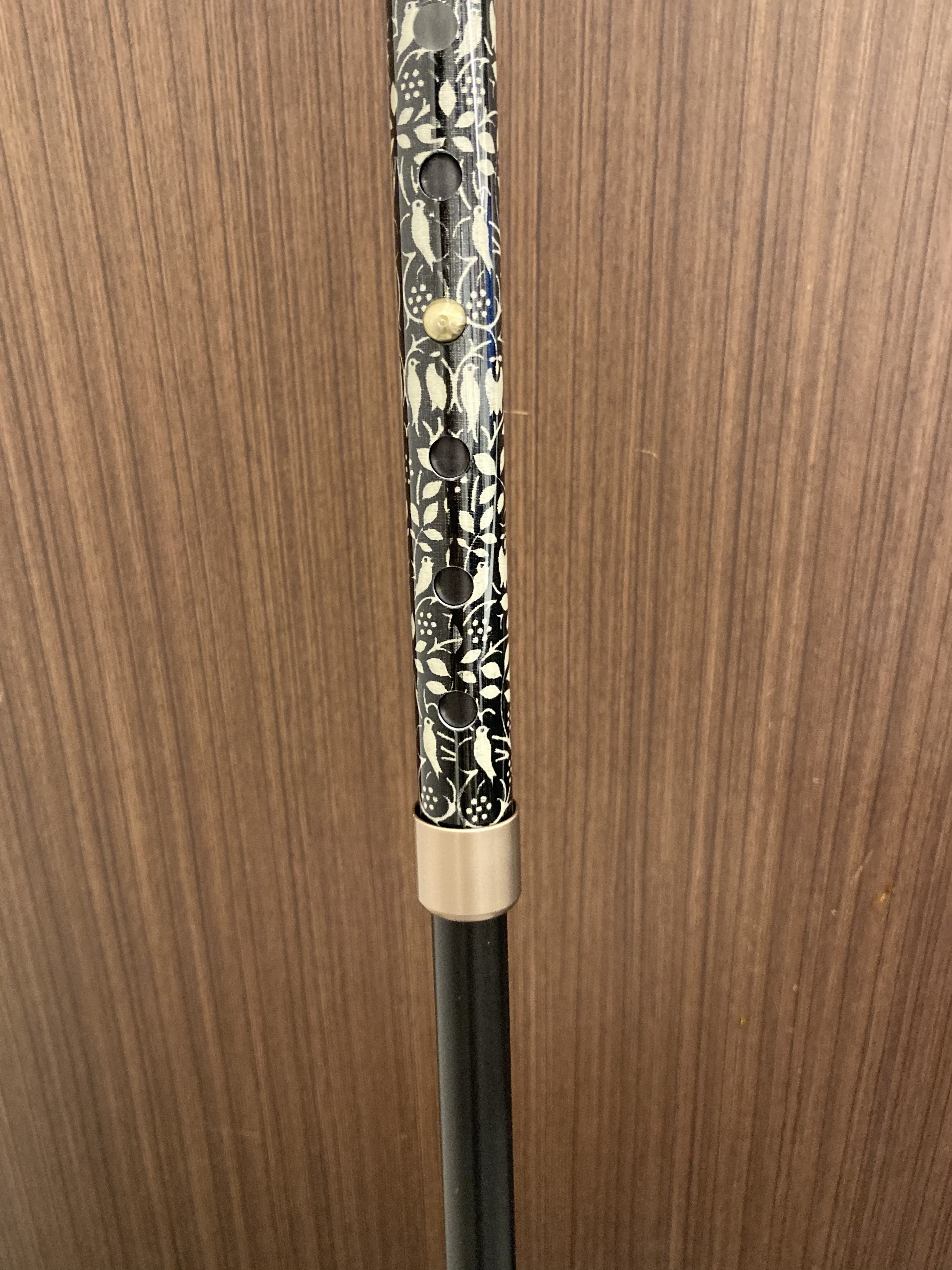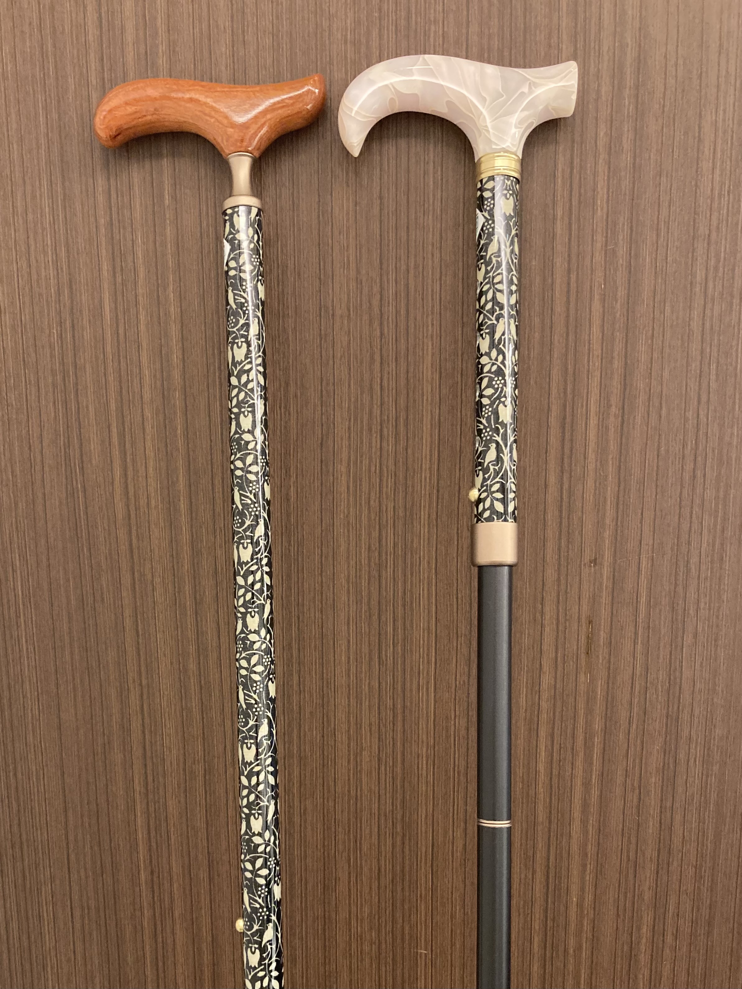 伸縮杖のグリップは花梨、折り畳み杖はアクリル樹脂。