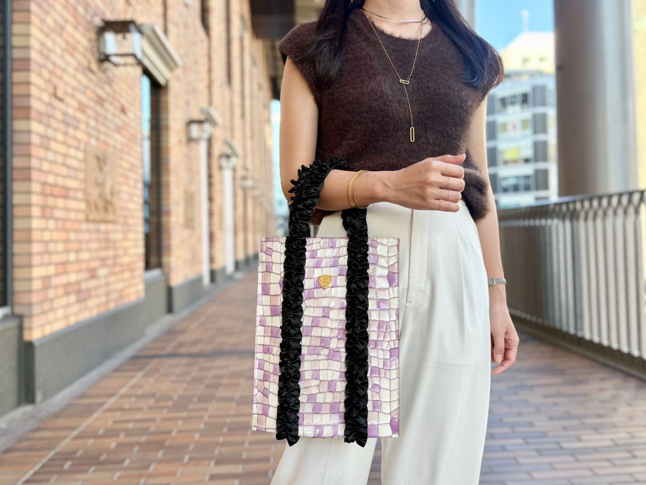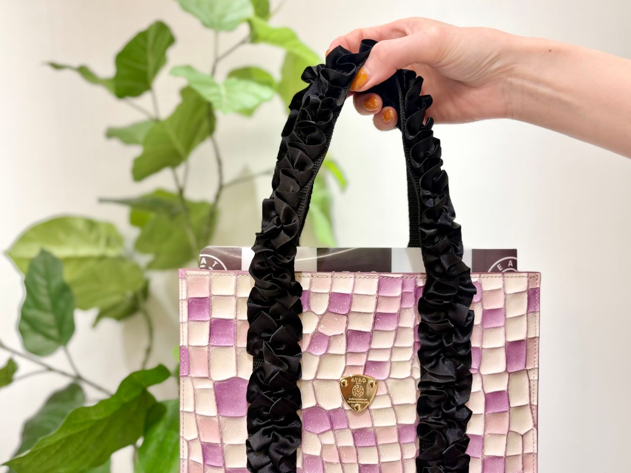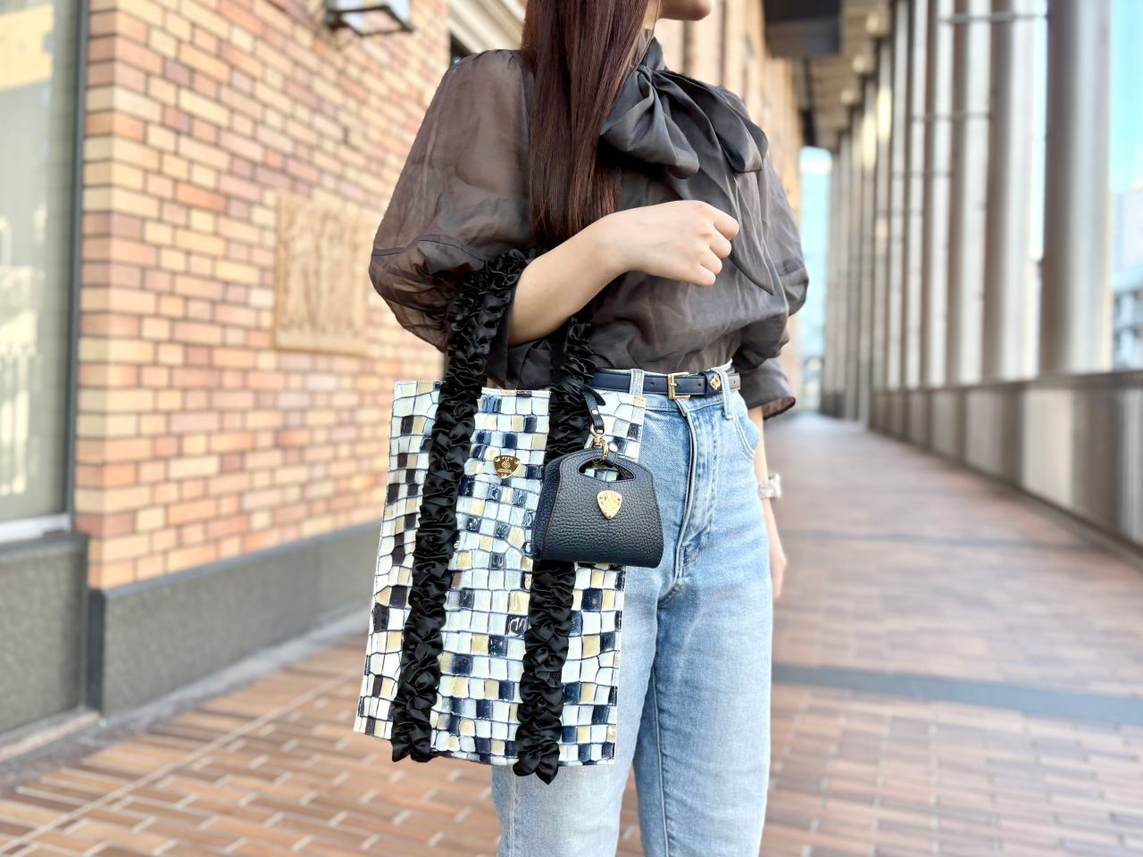 黒フリルハンドルが、甘すぎず大人っぽい印象に仕上げてくれます。