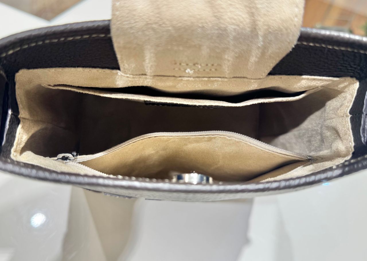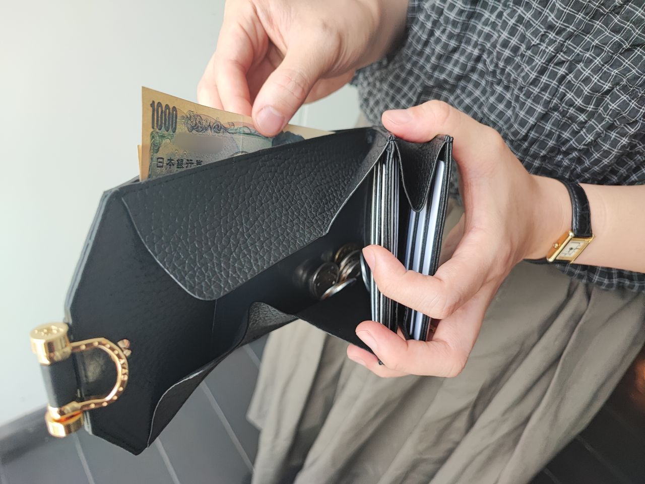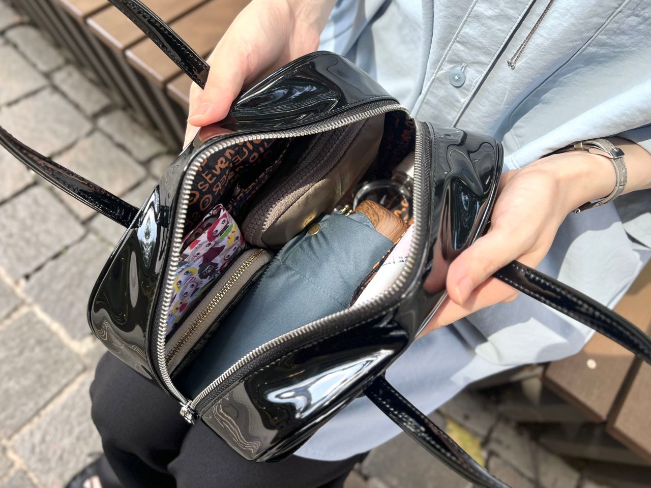 両サイドに内ポケットがあるので、リップや鍵、スマホなど、細々したものも出し入れしやすいです。