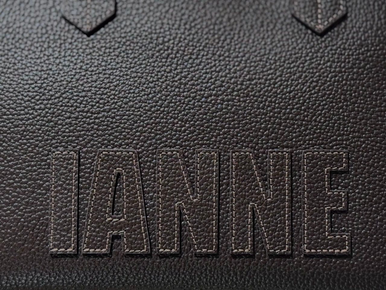 切文字のロゴをパッチワークで縫い付けたディティールがとっても印象的な"モネ"。単色なのにバッグに立体的に浮かび上がるロゴに目を奪われます。