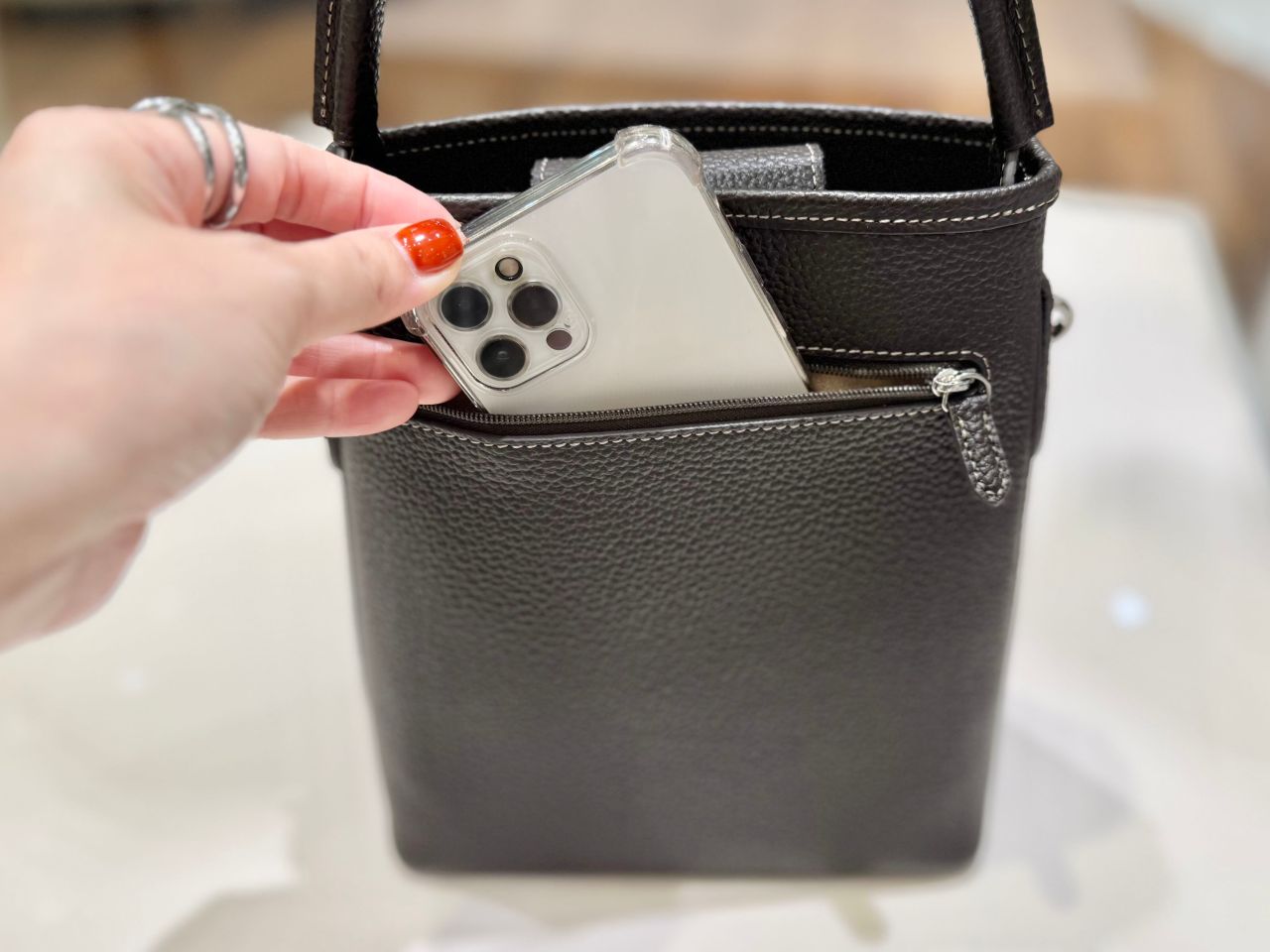 便利な背面のファスナーポケットは、スマホの定位置です!