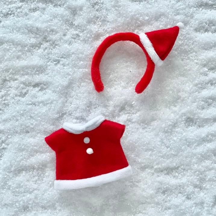 ポンチョ風のワンピースにサンタ風のカチューシャがセットになっております°˖✧モフモフの襟や裾部分がかわいい~♡