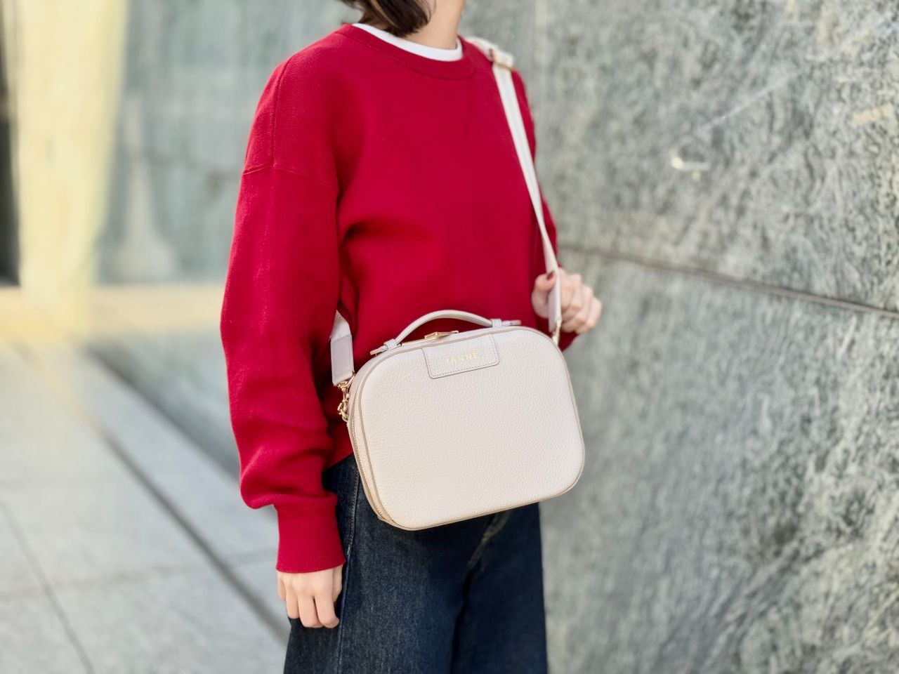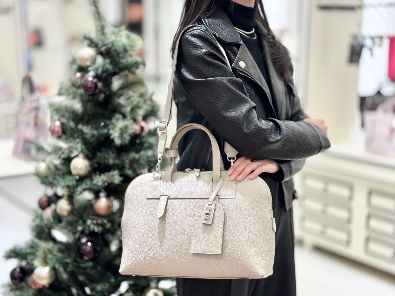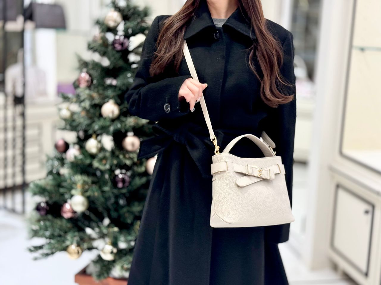 さて、12月に入り冬の気配が感じられるようになってきましたね!クリスマスソングも流れ始め…ホリデーシーズンの雰囲気になんだかわくわく、、そわそわしてしまいます★この季節は少し活動的になる秋冬派の私QP!お洋服やバッグの組み合わせを考えるのも楽しみの1つです!!寒くなってくると、ダークトーンや濃いめカラーのお洋服などが増えてきませんか??そこで本日は、ホリデーシーズンにオススメしたいホワイト系など、明るめで淡い色味のバッグをご紹介いたします!!