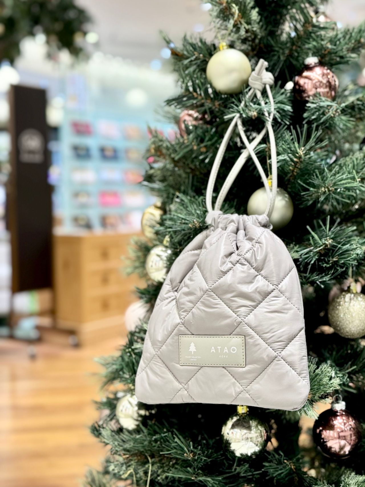 現在スタジオアタオではXmasフェアを開催中♪˖°期間中アタオ公式オンラインショップおよび直営店舗にて25,000円(税抜)以上ご購入の方に、先着でXmasの刻印が入った豪華な巾着ポーチをプレゼント♡