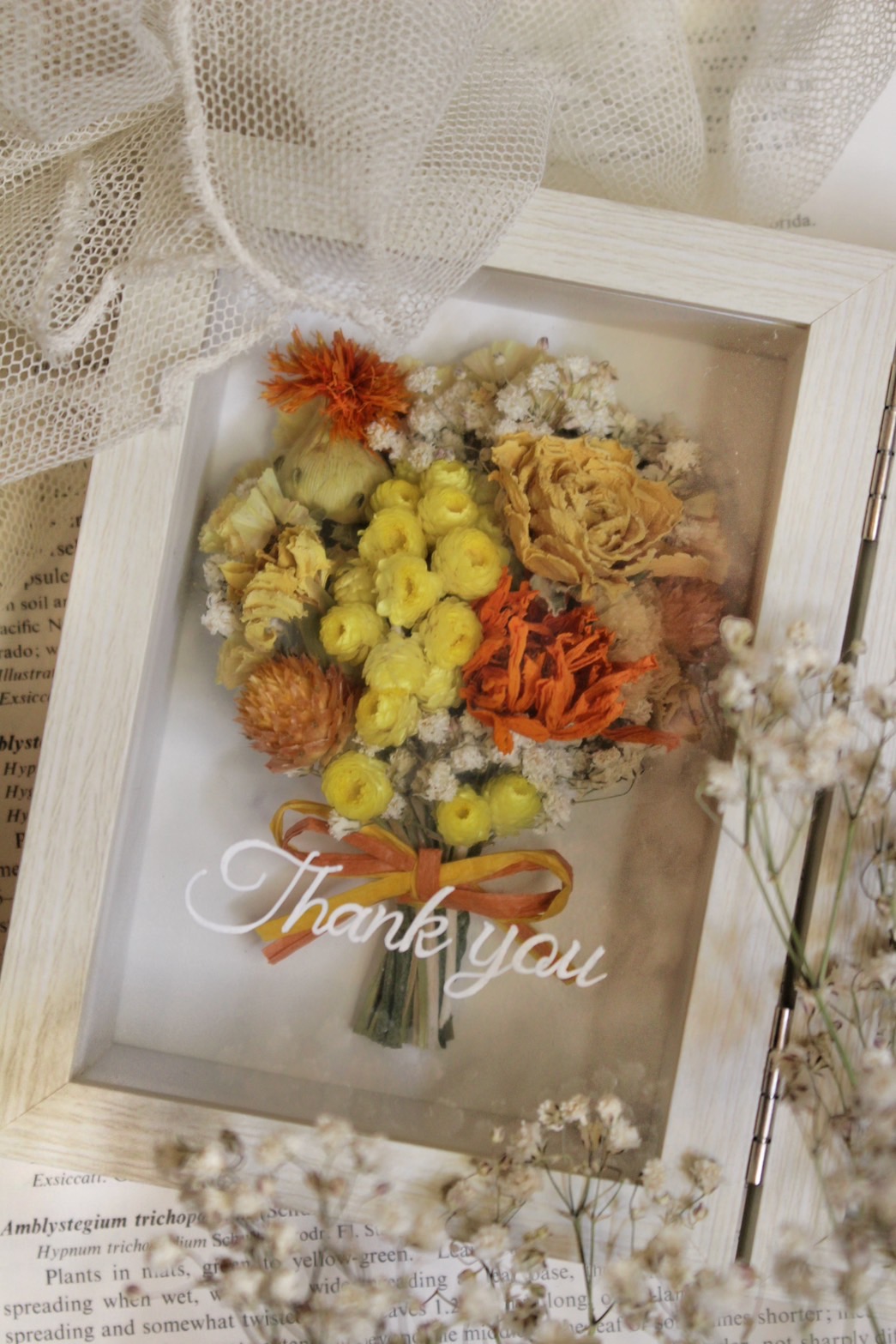 ガラスフレームのアレンジにはお好きなメッセージを入れることもできますのでお気軽にご相談くださいませ♪