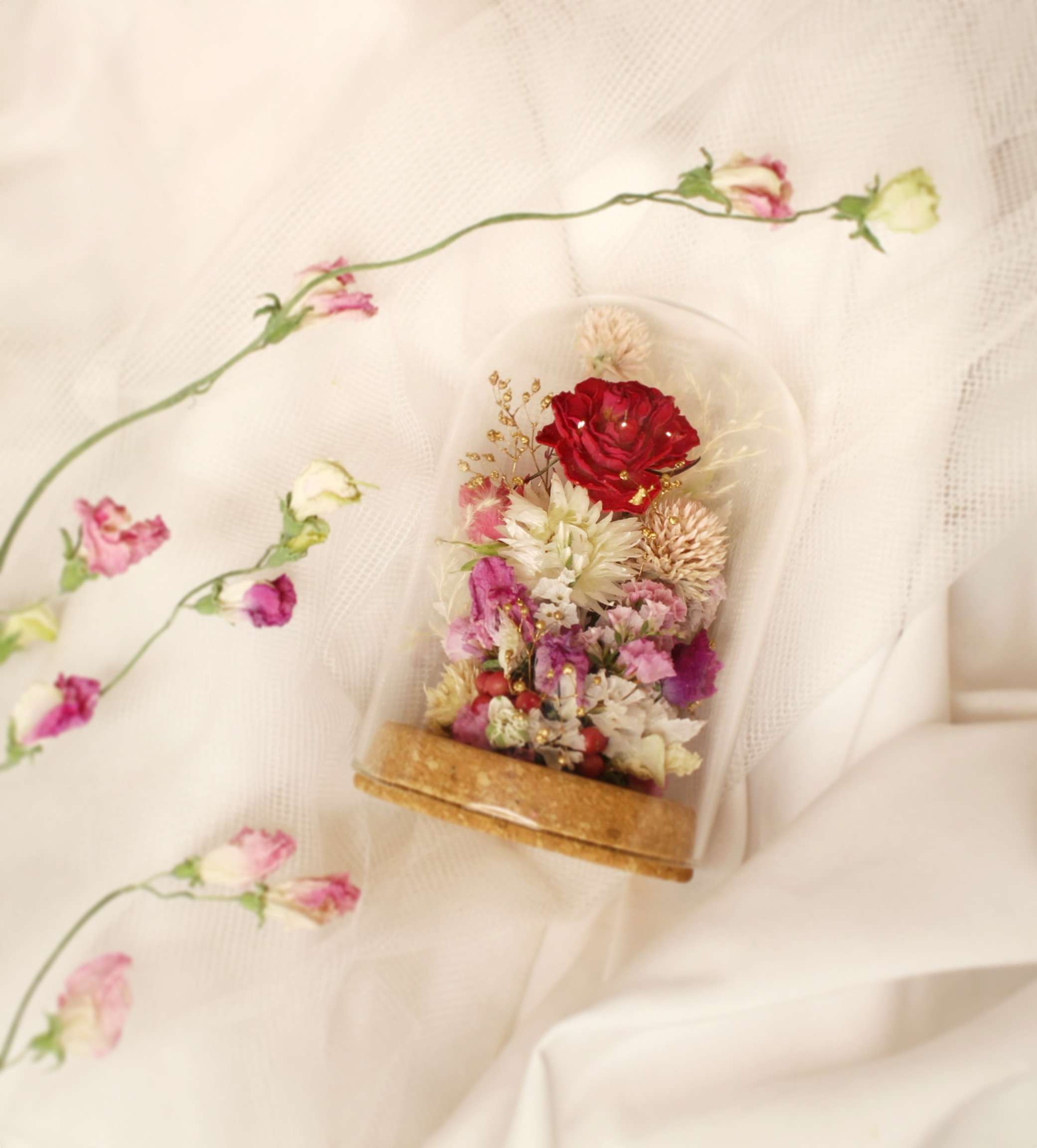 お手入れも簡単で見栄えも良いガラスドームは、オーダーいただけることはもちろん、店頭商品にもございます。
