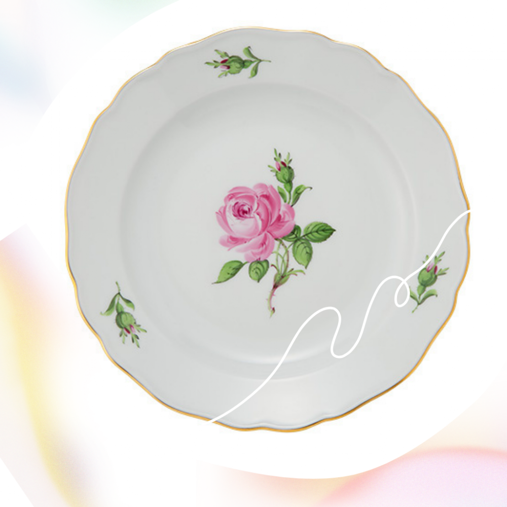 「マイセンホワイト プレート18cm」にマイセンの人気シリーズである「ピンクのバラ」を見本に