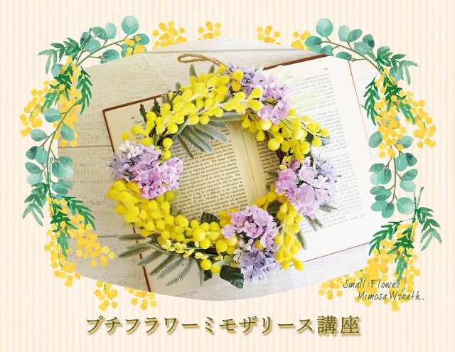 ミモザをふんだんに使ったボリュームたっぷりのリース。