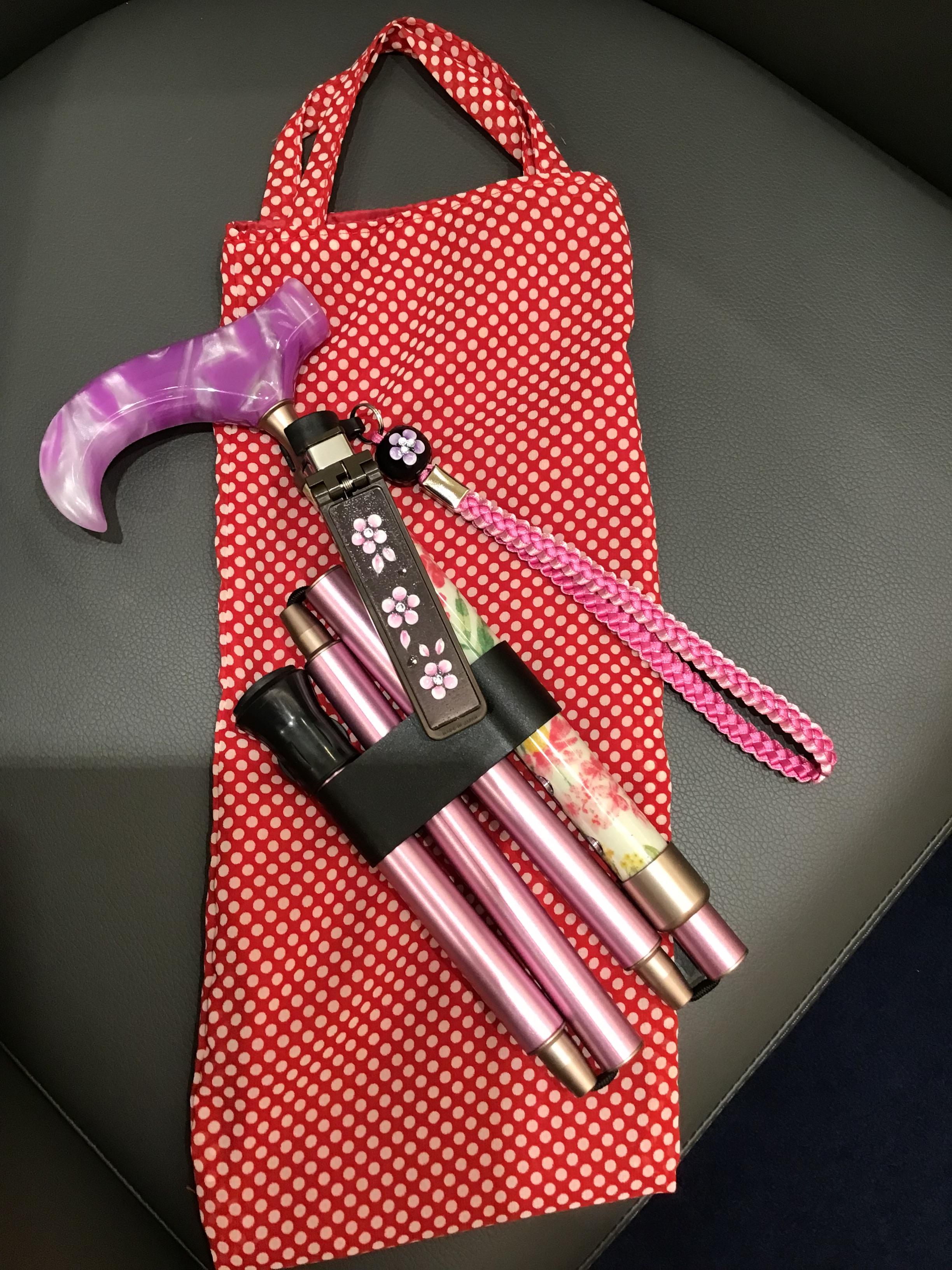 お出掛けのお供に春らしいピンクの折り畳み杖はいかがですか♪