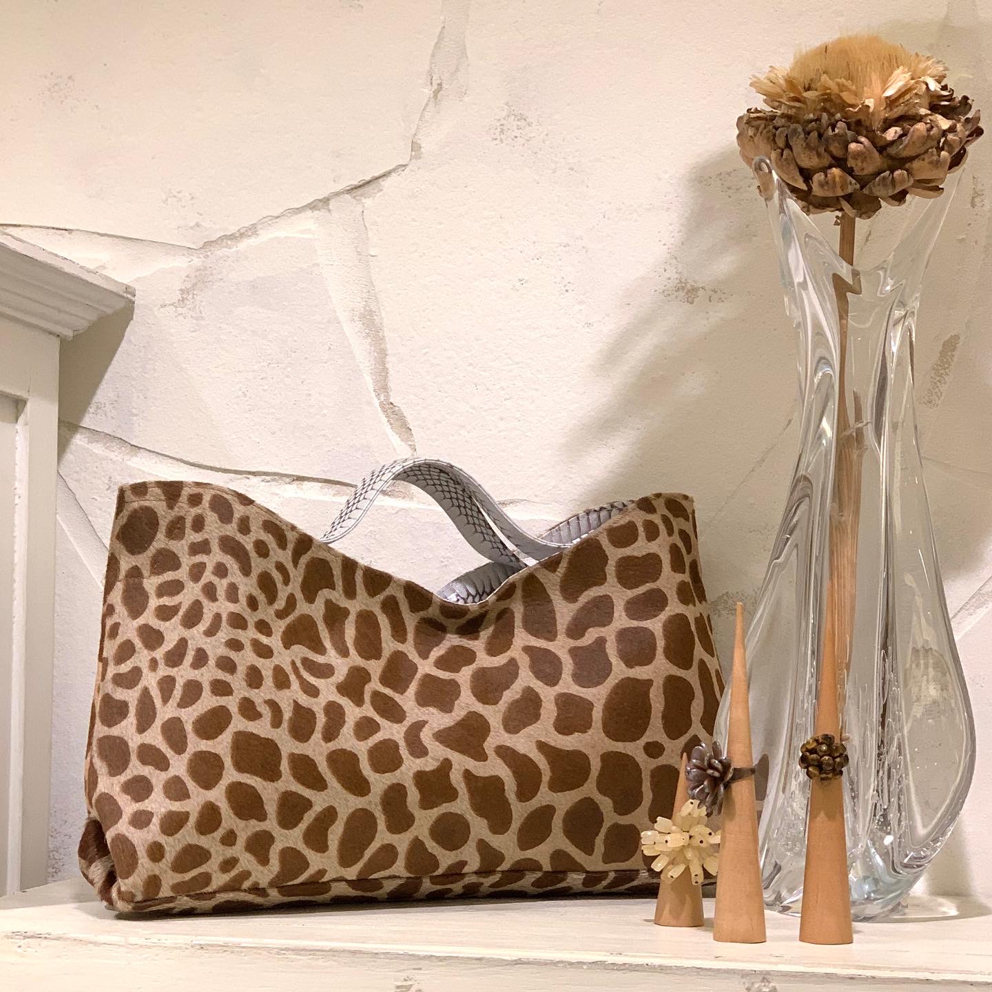 珍しいキリン柄の毛付き革がパッと目を惹きます。