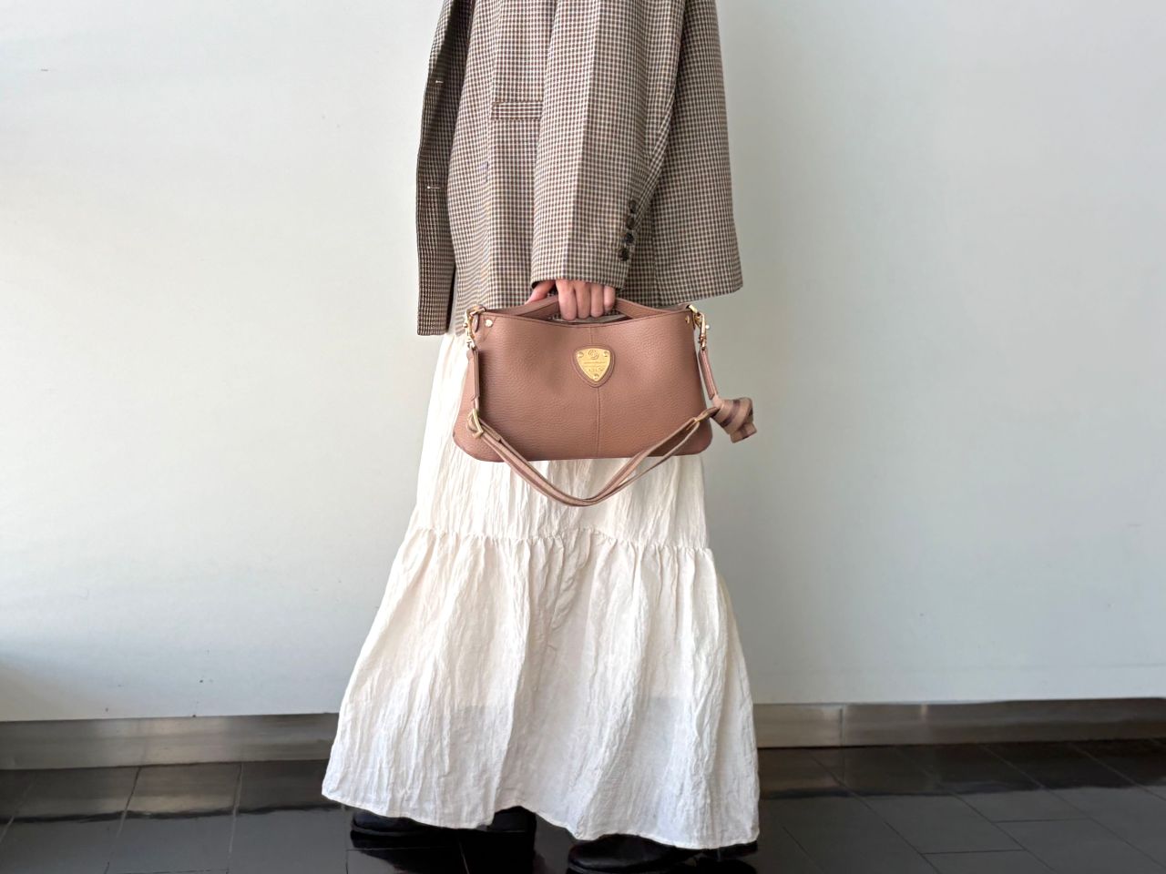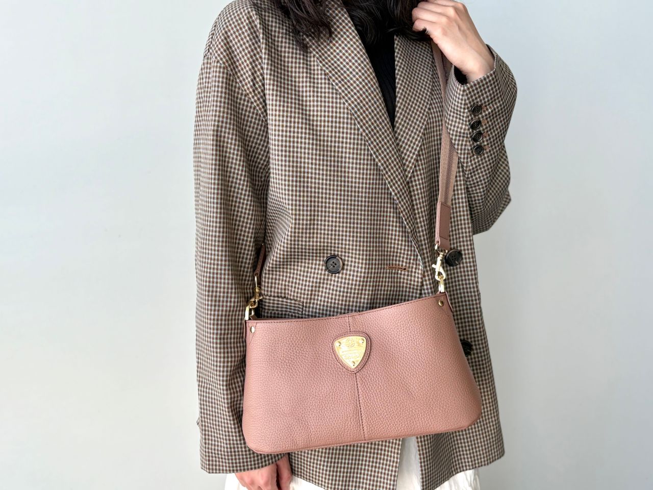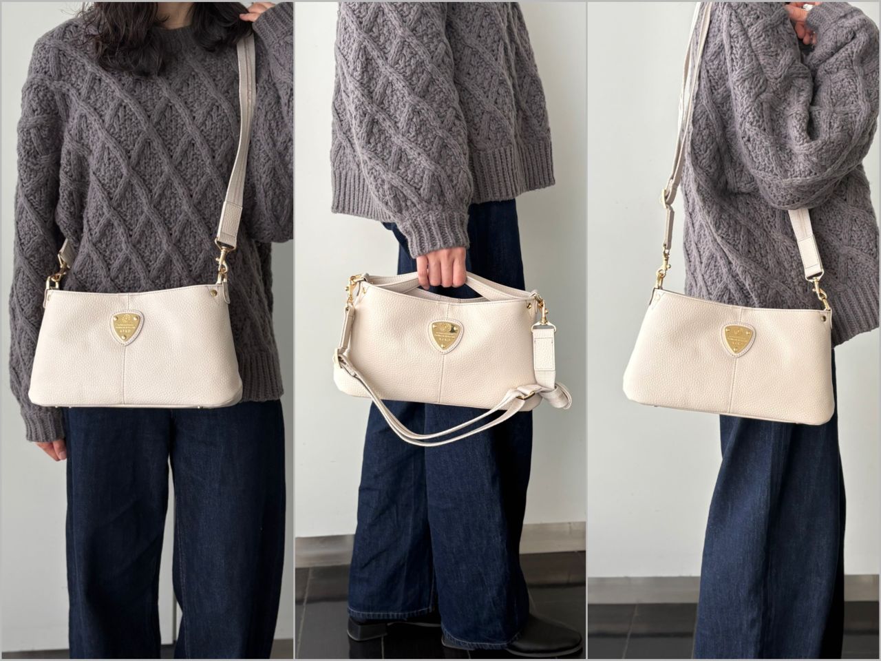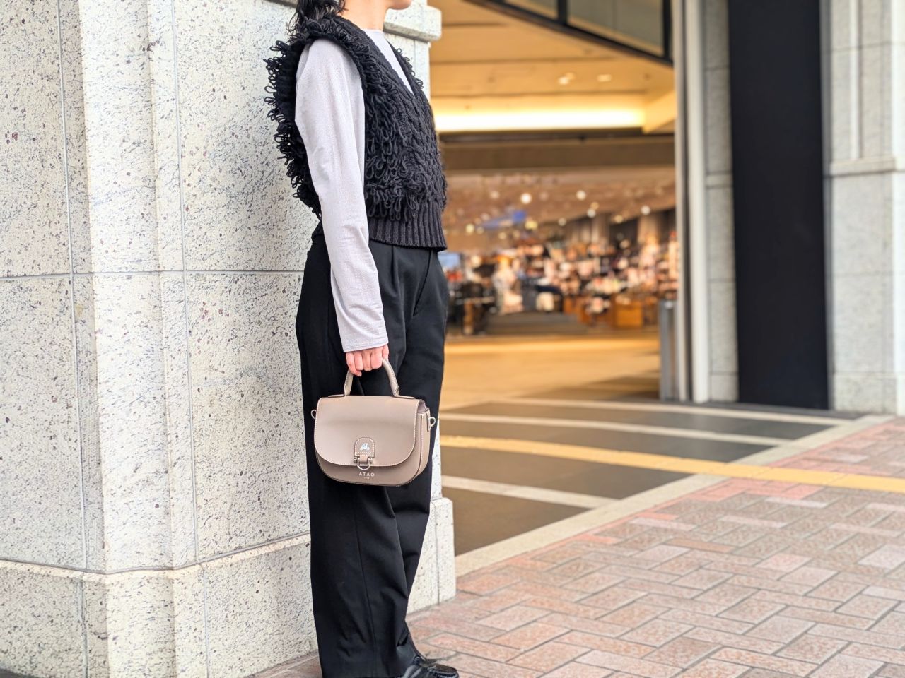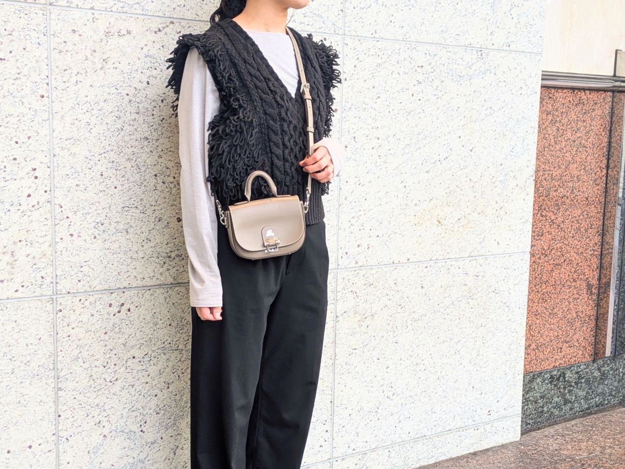 冬はモコモコニットやウールコートなど、素材に存在感がある季節。chivy+の上質なレザーは、そんな冬服にもしっかり馴染みつつ、品よく見せてくれます。
