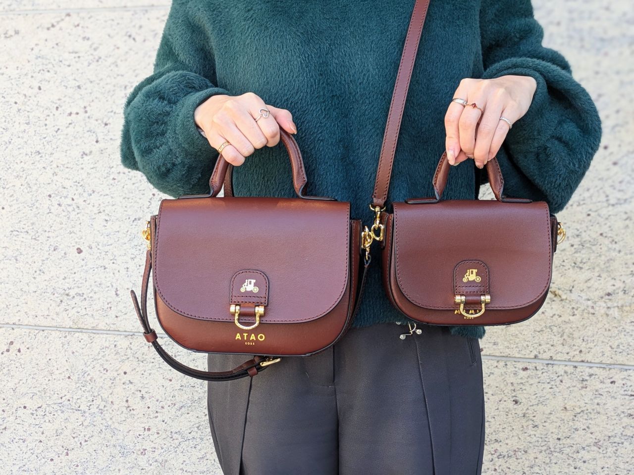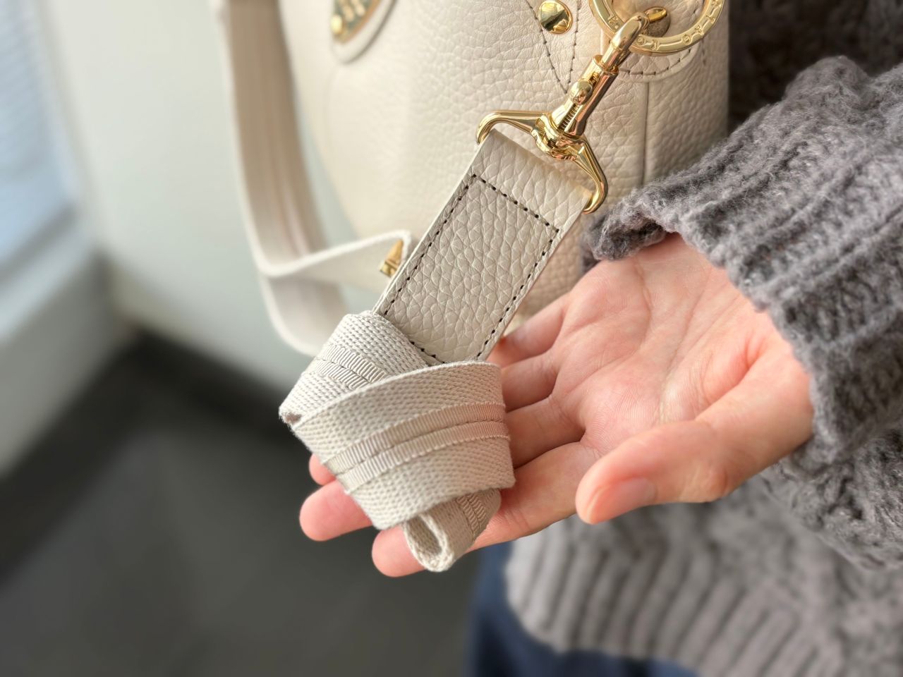 買い物・お散歩・カフェ…その日の予定に合わせてサッと持ち方を変えられるのが、とにかく便利です。