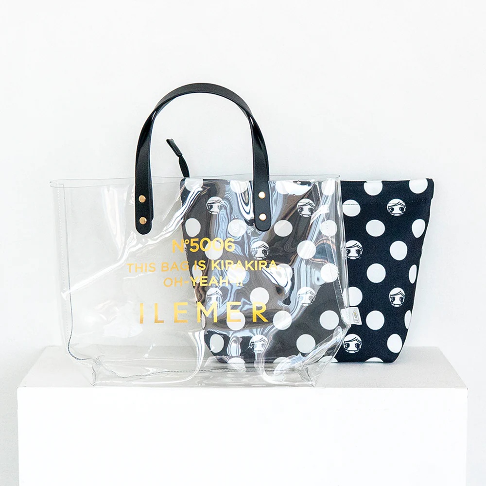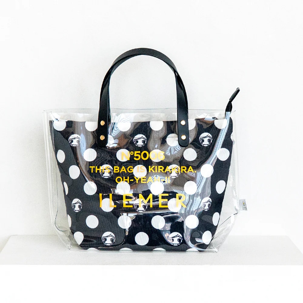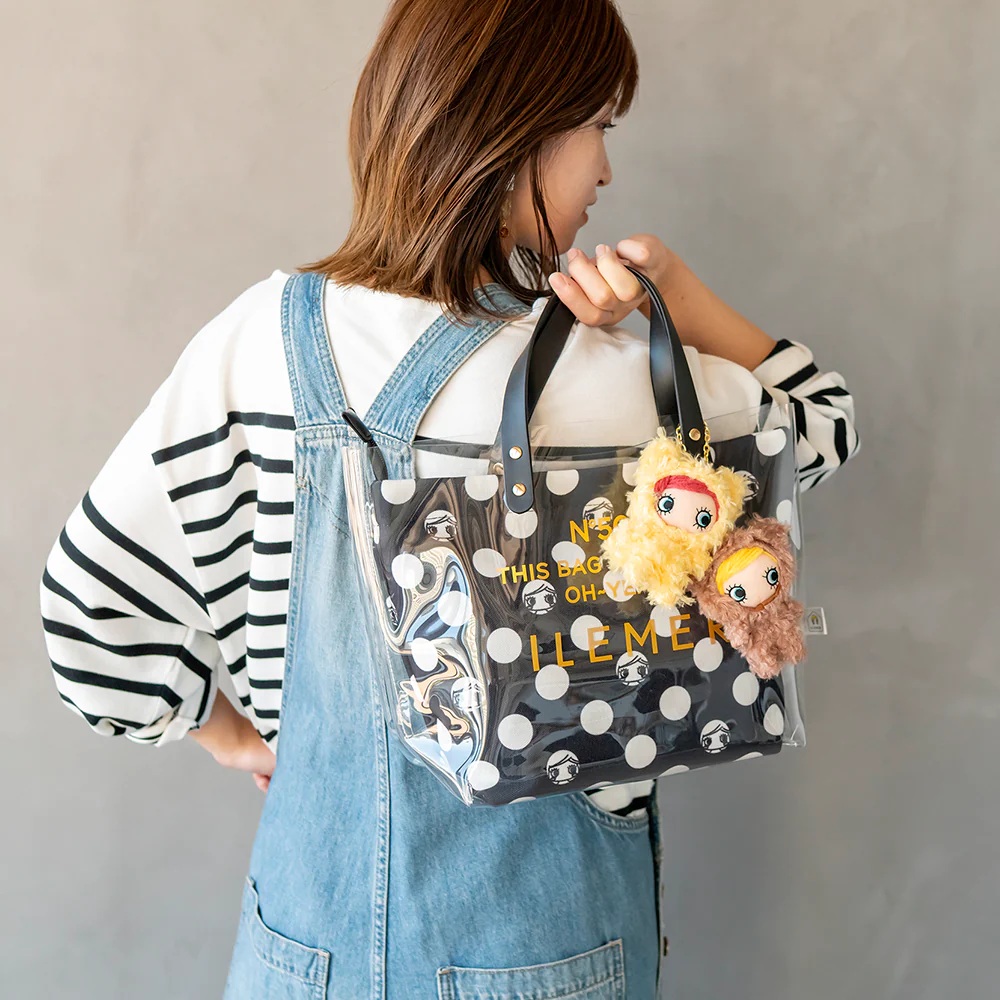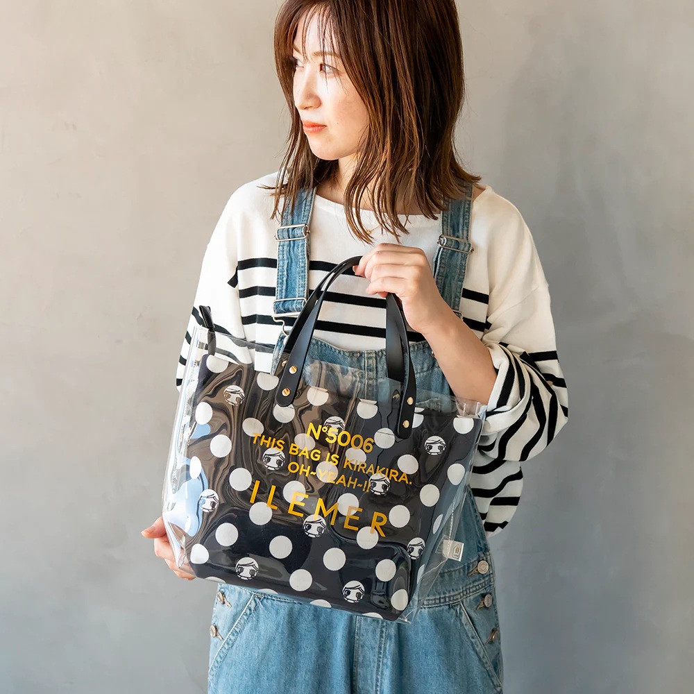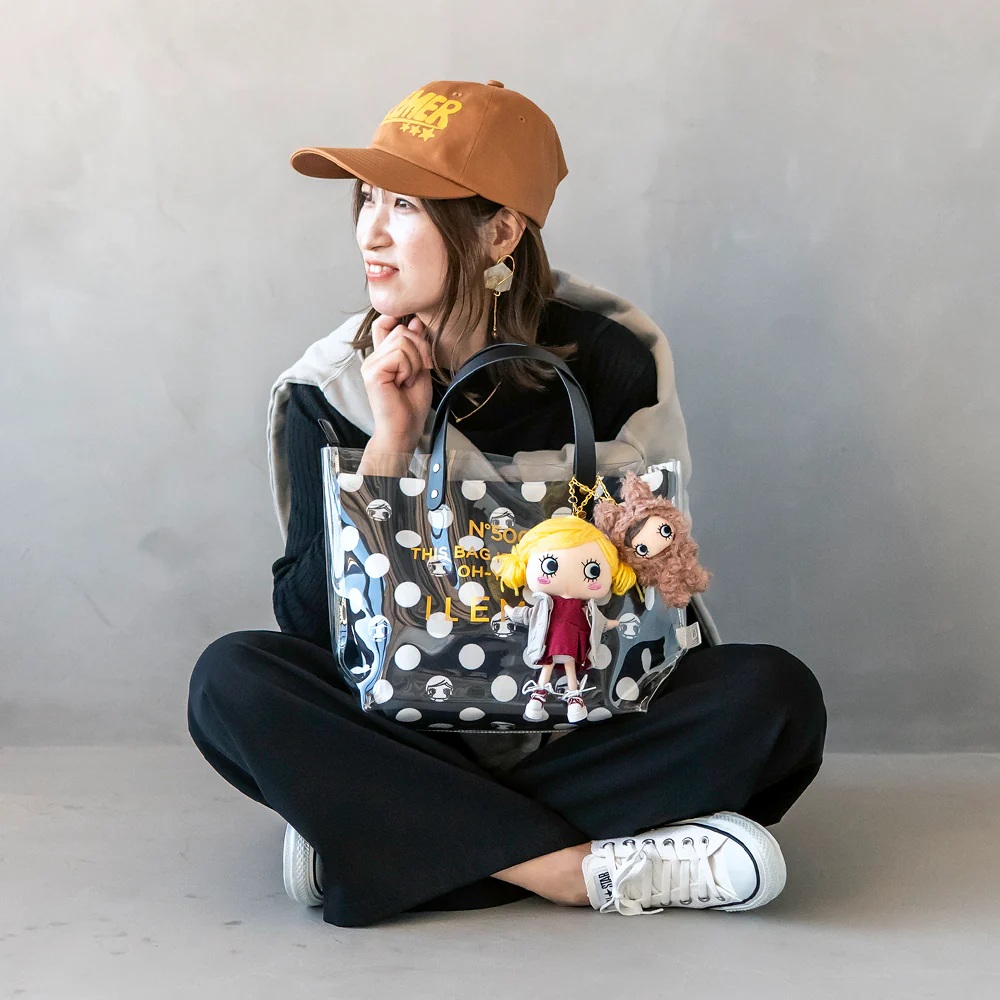 「ビニールバッグは夏のイメージ」という方もいらっしゃるかもしれませんが、黒の面積が多い水玉ブラックは特に秋以降も持ちやすいかと思います♩