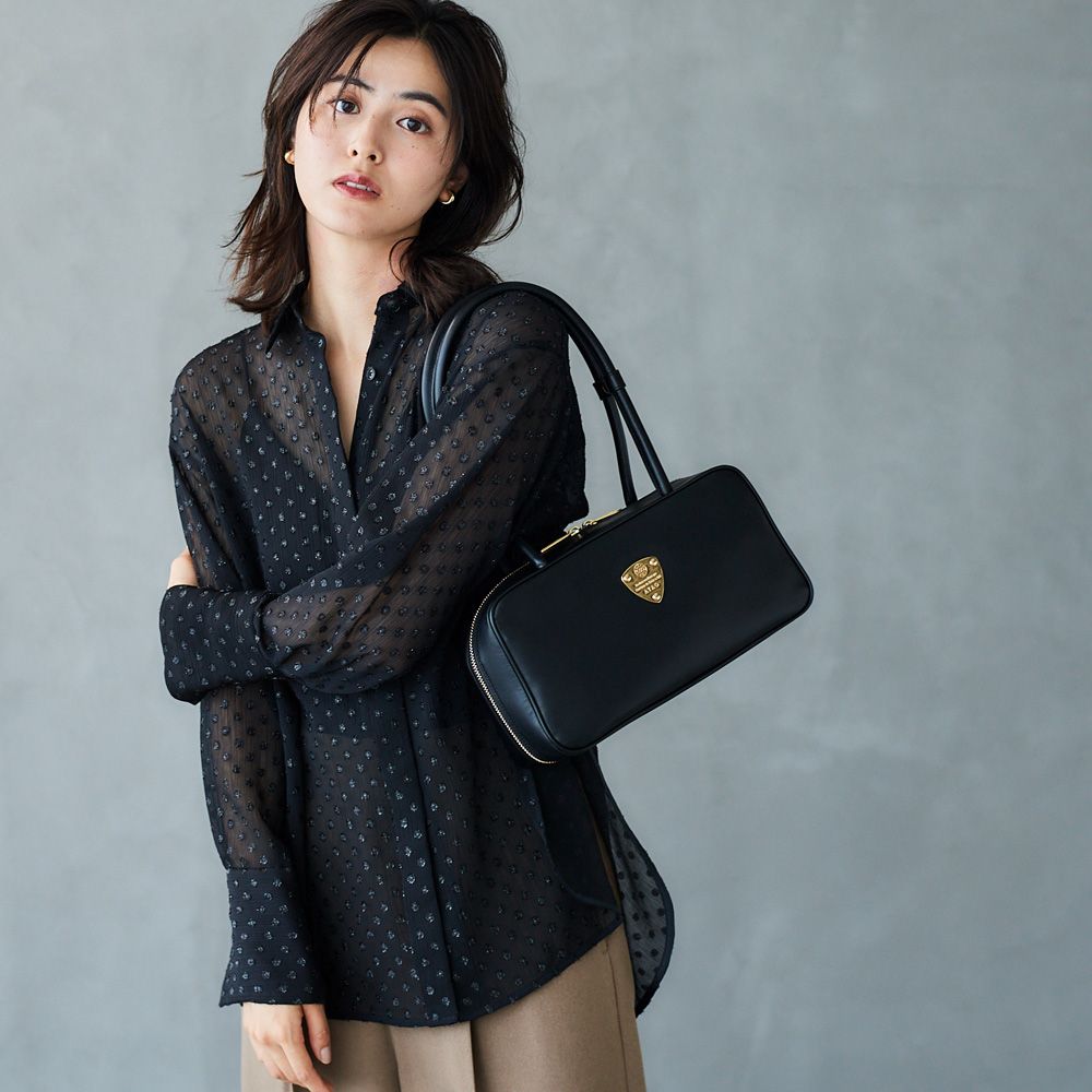 ゴールドが利いたブラックは革の落ち着いたツヤで華やかなかっこよさ。