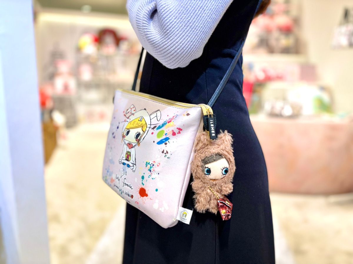 私と富子さんはその日の気分でハピプラminiも着用しています☆この日はたまたま2人とも自分の相棒ハピプラminiと服がそれぞれ同じ色味に(笑)ポシェットがふわふわのぬいぐるみになっているのがたまりません♡こちらのアイテムは全5種類です。