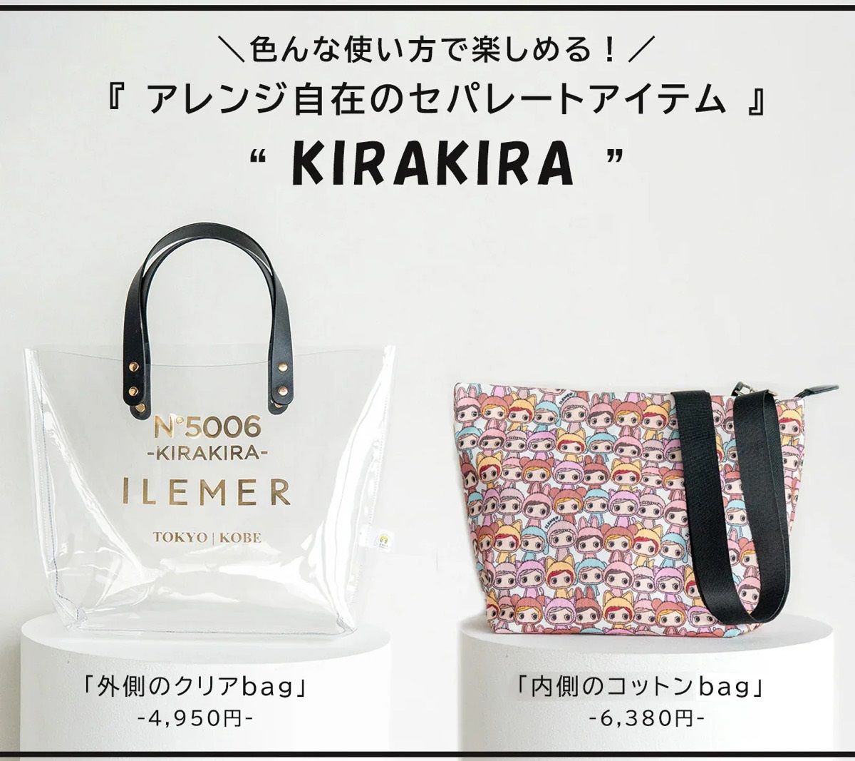 可愛い~!♡♡ そして、今回のKIRAKIRAは外側のクリアバッグと中のコットンバッグが別売りになりました!